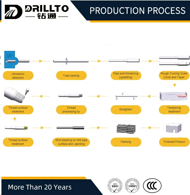 Drilling Rod is a device that connects drilling tools and drill bits, mainly used to transmit power, this 83mm Drilling Rod produced by our company has good wear resistance, best tensile strength and good torque performance, high hardness and long service life Long, we have our own drill pipe production line, and can also customize for you according to your actual needs.