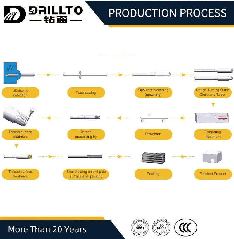Drilling Rod is a device that connects drilling tools and drill bits, mainly used to transmit power, this 89mm Drilling Rod produced by our company has good wear resistance, best tensile strength and good torque performance, high hardness and long service life Long, we have our own drill pipe production line, and can also customize for you according to your actual needs.